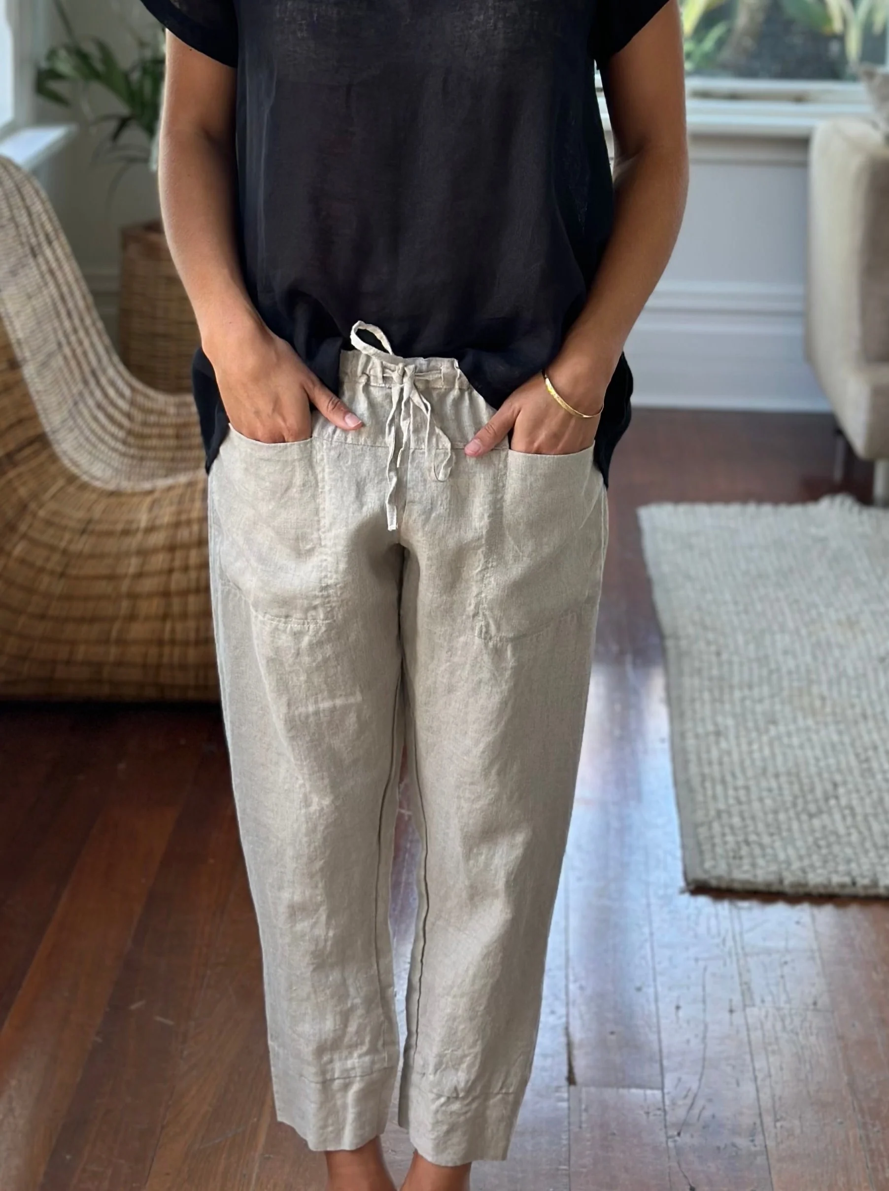 Loose drawstring waist with front pockets